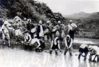 | 昭和30年ごろの田植え 轟木青年団 | 平成17年8月 花徳老人会田植え祭り | |||||||||