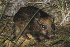 ◆トクノシマのリュウキュウイノシシ 鹿児島県のカテゴリーで消滅危惧T類、現在の状態をもたらした圧迫要因が引き続き作用する場合、近い将来における野生での消滅の危機性が高い地域個体群。 |