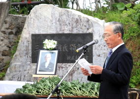 | 太平洋戦争中の1944年6月29日、兵力増強のため沖縄へ南下中、徳之島町亀徳沖で米潜水艦に撃沈された輸送船「富山丸」(7089トン)の第47回戦没者慰霊祭が14日、同町なごみの岬公園の慰霊碑前で厳かに行われた。