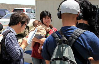 | インタビューを受ける母親代表で意見を述べた中野涼子さん |