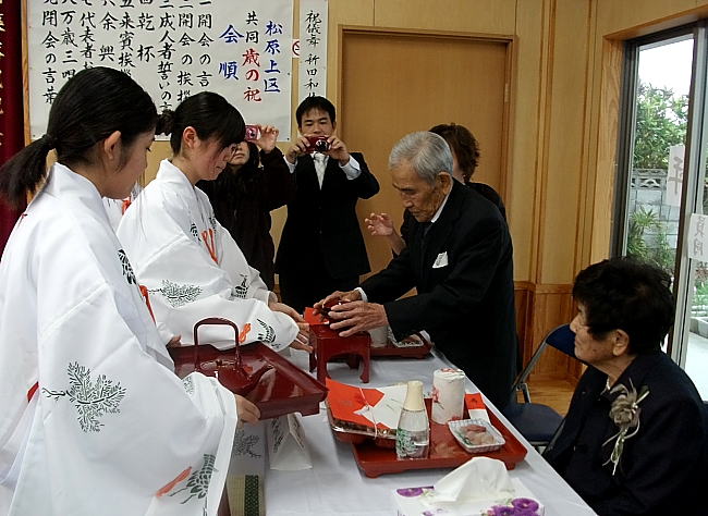 松原上区であった共同歳の祝=3日、上区公民館