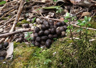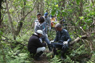 | 11時過ぎに山頂到着、早速昼食 | 山頂の数カ所でアマミノクロウサギの糞を確認 |