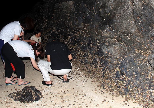 島内の各海岸海岸では夏の風物詩「オカヤドカリの産卵」も始まり、金見海岸では丘から海へ産卵に向かう大移動が繰り広げられている。