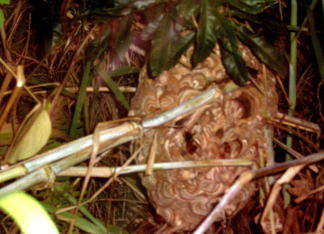 | 「チブルバチ」 (スズメバチ)の巣=20日、松原 |