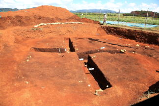 同遺跡の発掘調査は25年前から始まり、今回で8回目。約2500年前の縄文後期~弥生前期の集落跡で、3万7000~3万8000㎡の大きさの集落の遺跡が展開している。 黒曜石や中原式土器、木の実をすりつぶす石器などが多数出土。火を使った跡なども確認された。 昨年度の調査では、奄美群島で最大級とみられる竪穴住居跡も確認されている。