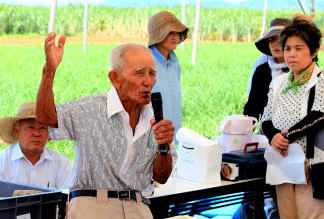 塔原遺跡発掘調査の成果を住民に還元するとともに、町内遺跡に対する地域住民の理解向上に資することを趣旨とする現地説明会が8日、天城町兼久の発掘現場で行われた。 説明会には町内外から約40名が参加。 春教育長は挨拶で「行く行くは遺跡を復元し、国の指定を受けてこの一帯を憩いの場にしたい」と語った。
