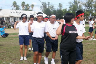 | 最後の決戦(応援合戦)=天城中 | 縄ない競争=三京分校 |